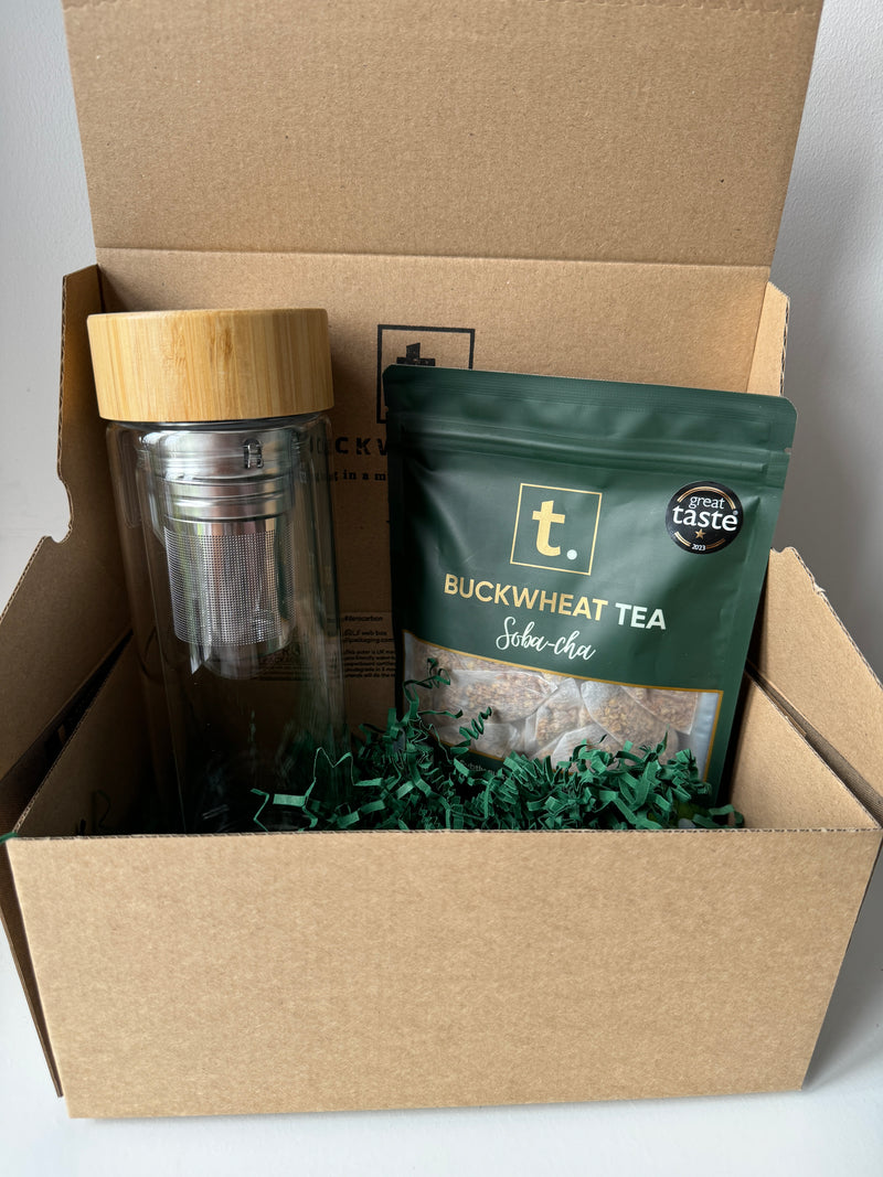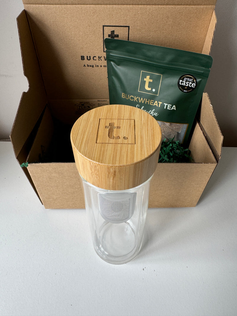 Optional: Bottle Protective Sleeve (+£5), Peach Buckwheat Tea (+£5), Tea Bowl & Spoon + On the Go Tea Tin (+£10)
