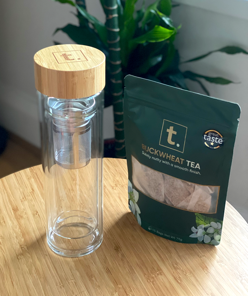 And, you can use it for two bottles (that's almost 1 litre!) of buckwheat tea with just one of our teabags or 2-3 teaspoons of loose tea.