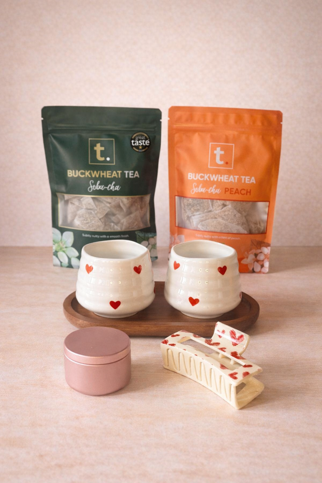 The subtle, nutty flavour of buckwheat is what promotes the feeling of calm and tranquility, especially in the relaxing state of a cup of tea. Not to mention that the tea contains magnesium, which helps one relax.