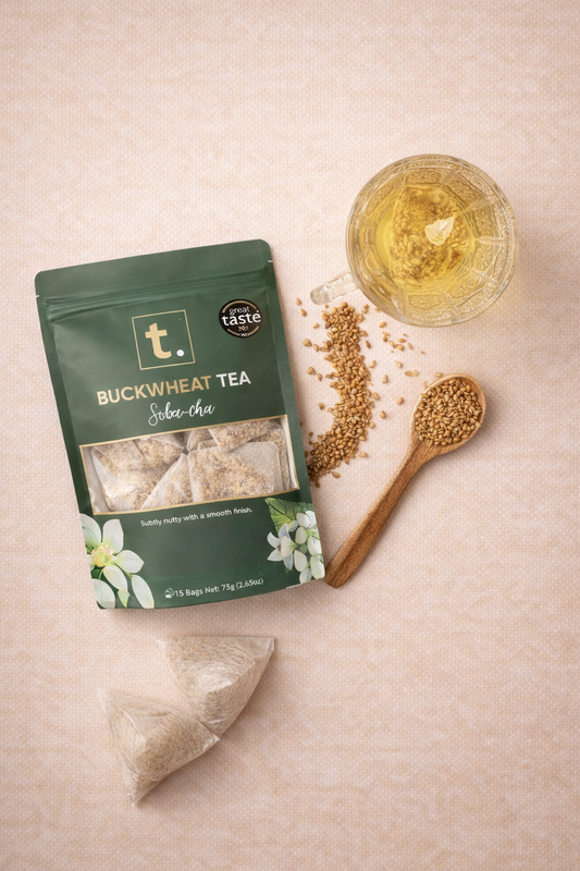 Buckwheat tea, also known as soba-cha, is a caffeine-free tea made from roasted buckwheat kernels. It has a subtly nutty and delicately sweet flavour, and is popular in East...
